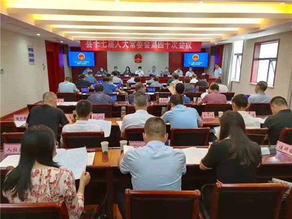 8月17日,县十七届人大常委会第四十次会议召开。县人大常委会党组书记、主任陈忠才主持会议,党组副书记、副主任李少中,副主任邵宇华、徐杰保、黄广林及常委会委员共27人出席会议。县委常委、县委组织部部长吴改,县委常委、常务副县长王勇,县人民法院院长王少春,县人民检察院检察长刘伟栋,县监察委员会、县政府办、发改委、财政局、审计局、人社局等单位负责人,毕桥镇、凌笪镇人大主席,部分县人大代表列席会议。